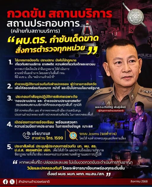 ผบ.ตร.กำชับเด็ดขาด สั่งการตำรวจทุกหน่วย กวดขันสถานบริการ สถานประกอบการ (คล้ายกับสถานบริการ)