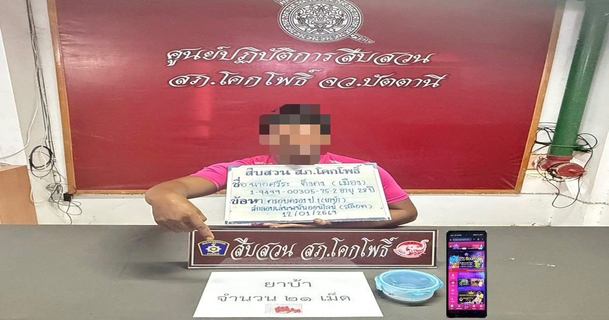 “มียาเสพติดให้โทษประเภทที่ 1 (ยาบ้า) ไว้ในครอบครองโดยไม่ได้รับอนุญาต และ ลักลอบเล่นการพนันออนไลน์ (สล็อต) พนันเอาทรัพย์สินกันโดยไม่ได้รับอนุญาต”