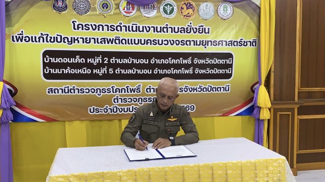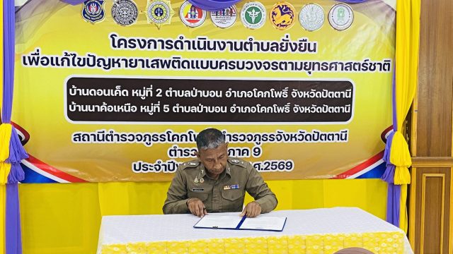 ว่าที่ร้อยตรี สมบัติ สิงห์คาร ปลัดจังหวัดปัตตานี ให้เกียรติเป็นประธานในพิธีเปิดโครงการอบรมชุดปฏิบัติการตำบลยั่งยืนเพื่อแก้ไขปัญหายาเสพติด แบบครบวงจรตามยุทธศาสตร์ ตำรวจภูธรโคกโพธิ์ ประจำปีงบประมาณ ๒๕๖๙