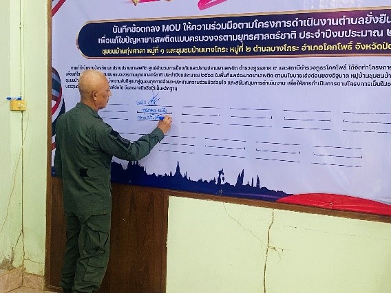 พ.ต.อ.มุสตอพา มะนิ ผู้กำกับการสถานีตำรวจภูธรโคกโพธิ์ พ.ต.ท.สุธรรม อินทร์ขาว รองผู้กำกับการป้องกันปราบปรามสถานีตำรวจภูธรโคกโพธิ์ น.พ.ภาสกร บัวขาว ผู้อำนวยการโรงพยาบาลโคกโพธิ์ นายชัยนุวัฒน์ เพชรช่วย นายกองค์การบริหารส่วนตำบลบางโกระ น.ส.อรพรรณ ศิริเสกียร นักวิชาการส่งเสริมการเกษตร น.ส.อาซีซะห์ สาอิ ผู้อำนวยการศูนย์ส่งเสริมการเรียนรู้นอกระบบโคกโพธิ์ นายพิเชฐ มโนรัตน์สกุล ปลัดผู้เป็นหัวหน้าประจำตำบลบางโกระ นายนราพิพัฒน์ สาอะ ปลัดอำเภอเจ้าพนักงานปกครอง(ชำนาญการ) ร.อ.ธีรวุฒิ ละไบโดย ผู้บังคับกองร้อยทหารพรานทึ่ 4308 นางเสาวลักษณ์ ศรเรือง ผู้อำนวยการโรงพยาบาลส่งเสริมสุขภาพตำบลบางโกระ นายปฏิพัทธ์ หนักแดง กำนันตำบลบางโกระ พร้อมด้วย คณะชุดปฎิบัติการโครงการชุมชนบำบัดอย่างยั่งยืน สภ.โคกโพธิ์ เจ้าหน้าที่ กต.ตร.สภ.โคกโพธิ์ ร่วมพิธีเปิดโครงการดำเนินงาน” โครงการชุมชนบำบัดอย่างยั่งยืน ในพื้นที่แพร่ระบาดยาเสพติด ตามนโยบายเร่งด่วนของรัฐบาล ” ประจำปีงบประมาณ 2568 พร้อมลงนาม MOU โครงการฯ ม.1 และ ม.2 ต.บางโกระ อ.โคกโพธิ์ จว.ปัตตานี โดยมี นายเชาวลิต สิทธิฤทธิ์นายอำเภอโคกโพธิ์ เป็นประธาน ณ ที่ทำการกองทุนหมู่บ้านบางโกระ หมู่ที่ 2 ต.บางโกระ อ.โคกโพธิ์ จว.ปัตตานี