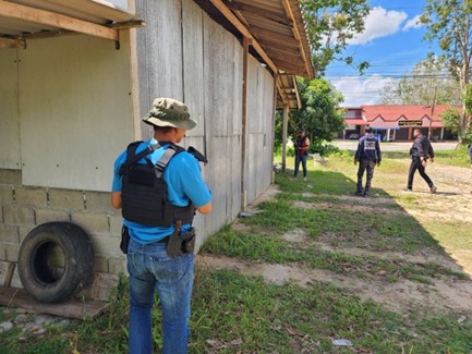 พ.ต.ท.สมศักดิ์ แก้วเกาะสะบ้า สว.สส.ฯ, ร.ต.อ.วีระ สุวรรณกุล รอง สว.สส.ฯ , ร.ต.ท.สมชาย พรรณรังษี รอง สว.(ป.)ฯ พร้อม ชป.สืบสวนฯปฎิบัติการเชิงรุก/สืบสวนหาข่าว บ้านไม่มีเลขที่