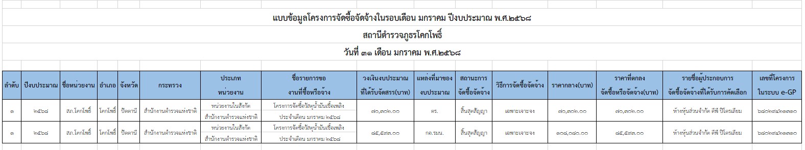 สรุปผลการดำเนินการจัดซื้อจัดจ้างในรอบ เดือน มกราคม 2568