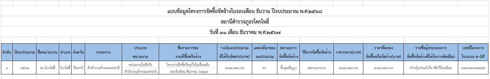 หมายเหตุ : เนื่องจากเดือนตุลาคม 2567 สถานีตำรวจภูธรโคกโพธิ์ ยังไม่ได้รับการจัดสรรงบประมาณ ปีงบประมาณ 2568